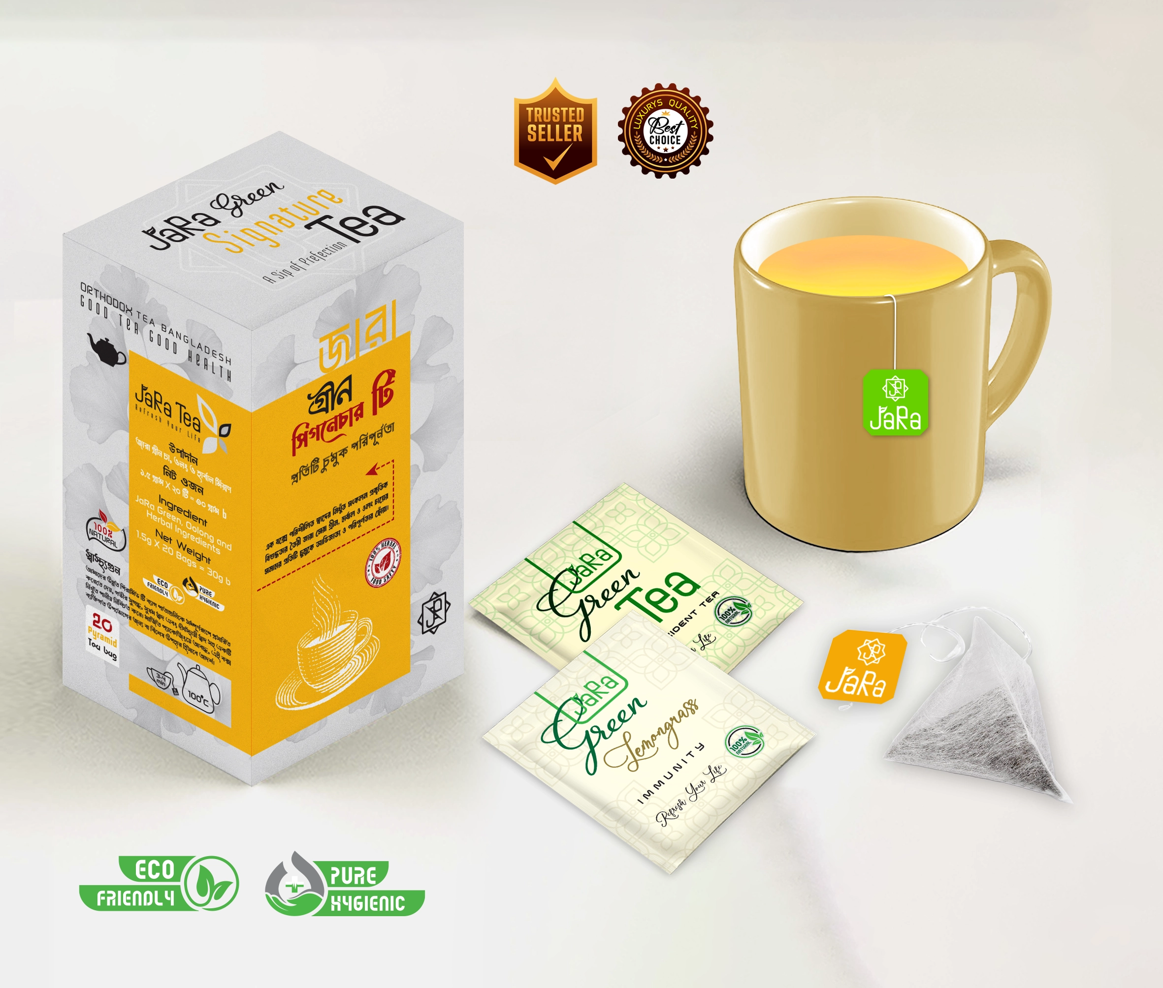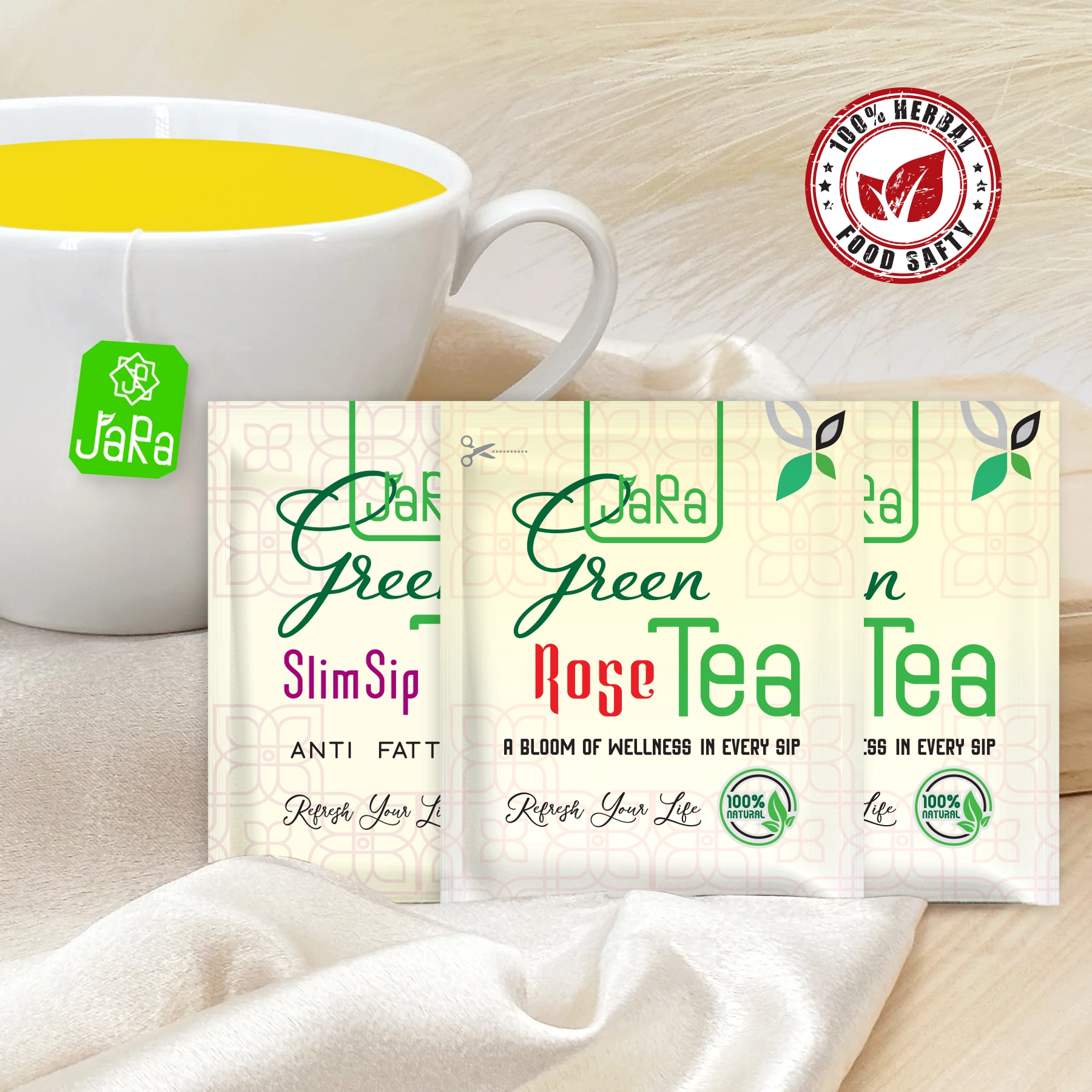 ✔ Selected JaRa Green Tea Leaves ✔ Natural herbs and botanicals (vary by variant) ✔ No artificial colors, flavors, or preservatives